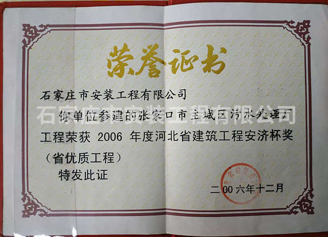 2006年度河北省建筑工程安濟杯獎(省優質工程)
